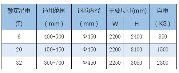 立卷吊具基本參數: